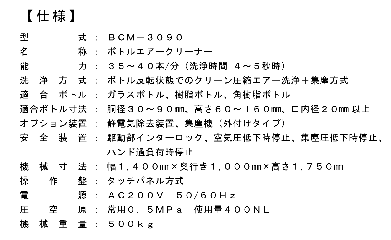 BCM-3090本機は、ボトルをハンドで保持して180°反転した状態で口元を集塵マウスで密閉後、