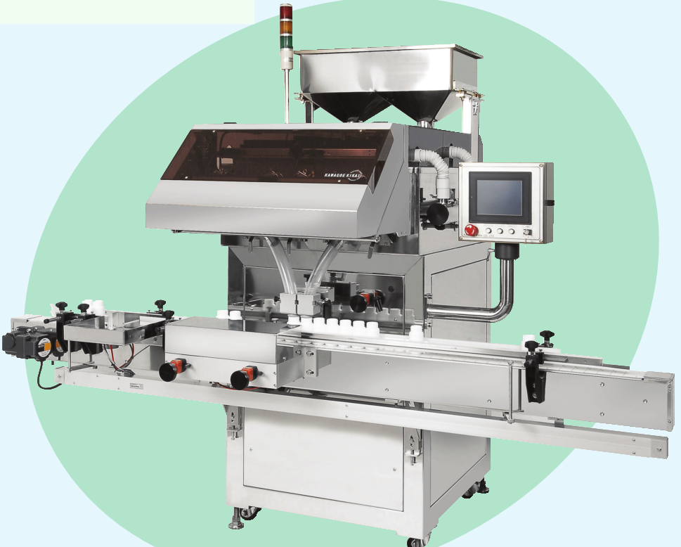 計数値が20錠から9,999錠までの範囲で瓶または袋の中へ数えながら充填する機械です。